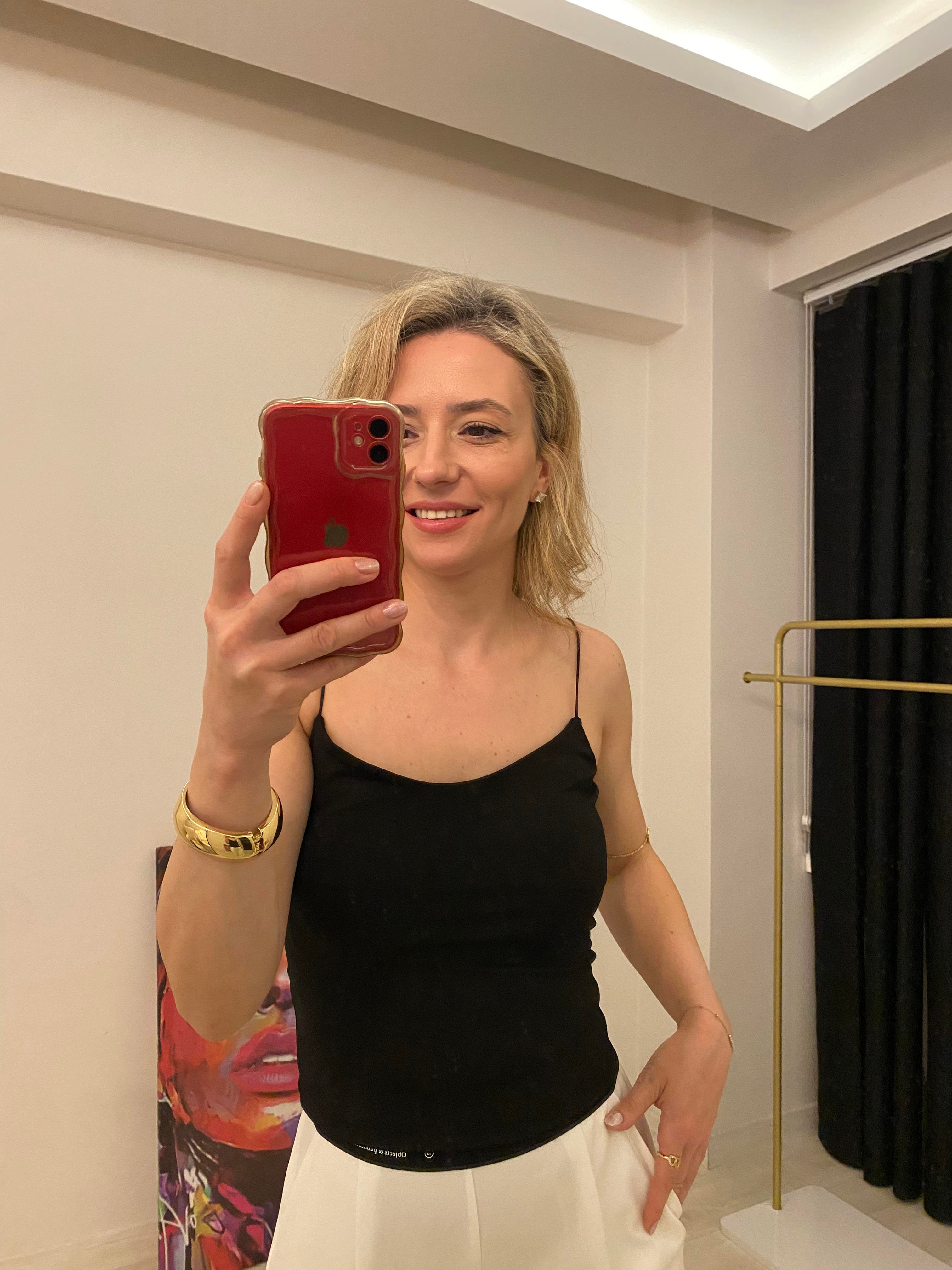 İp Askılı Parlak Kumaş Basic Siyah Atlet